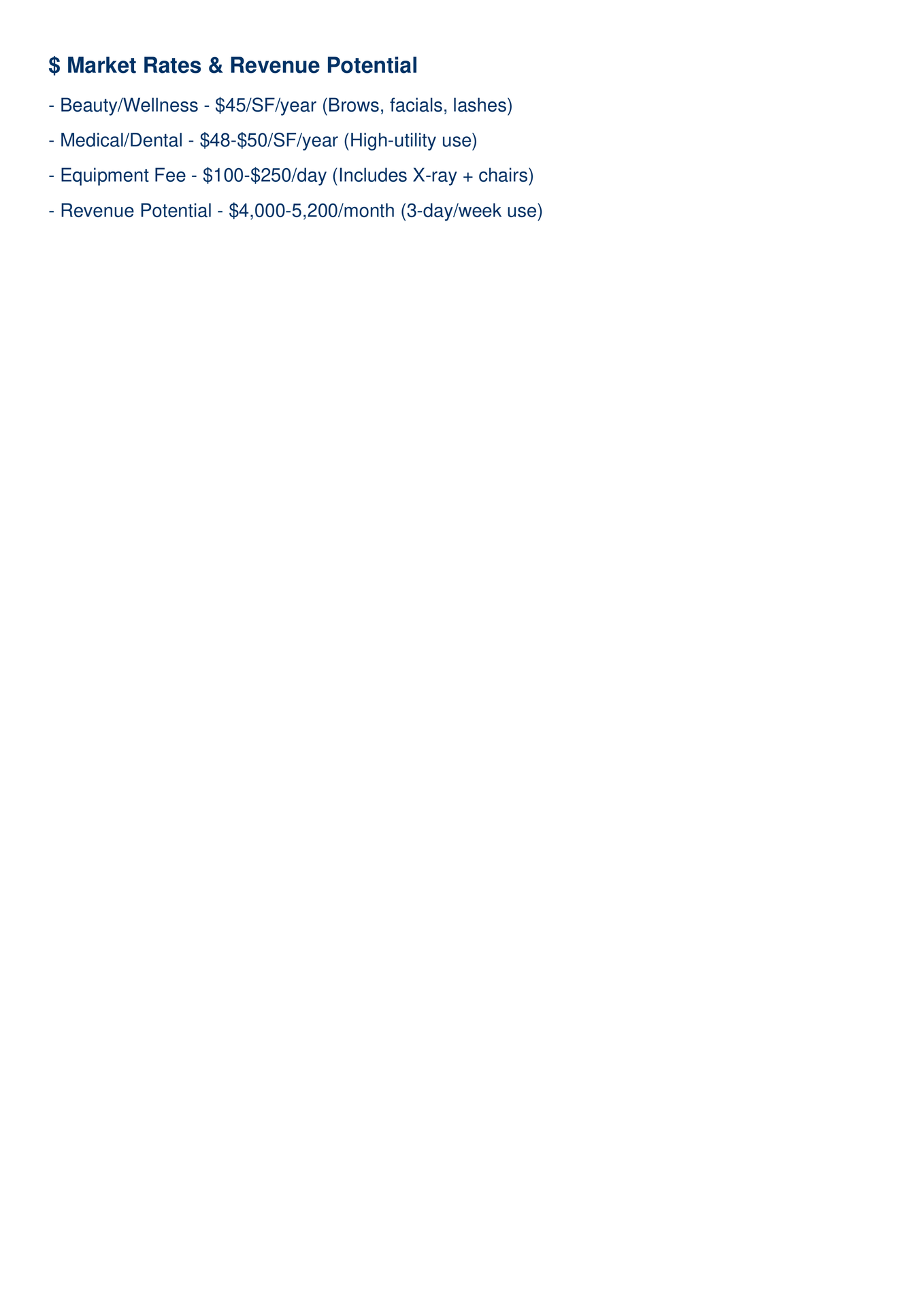 $1,500 – $1,750 per chair (3 days/week)